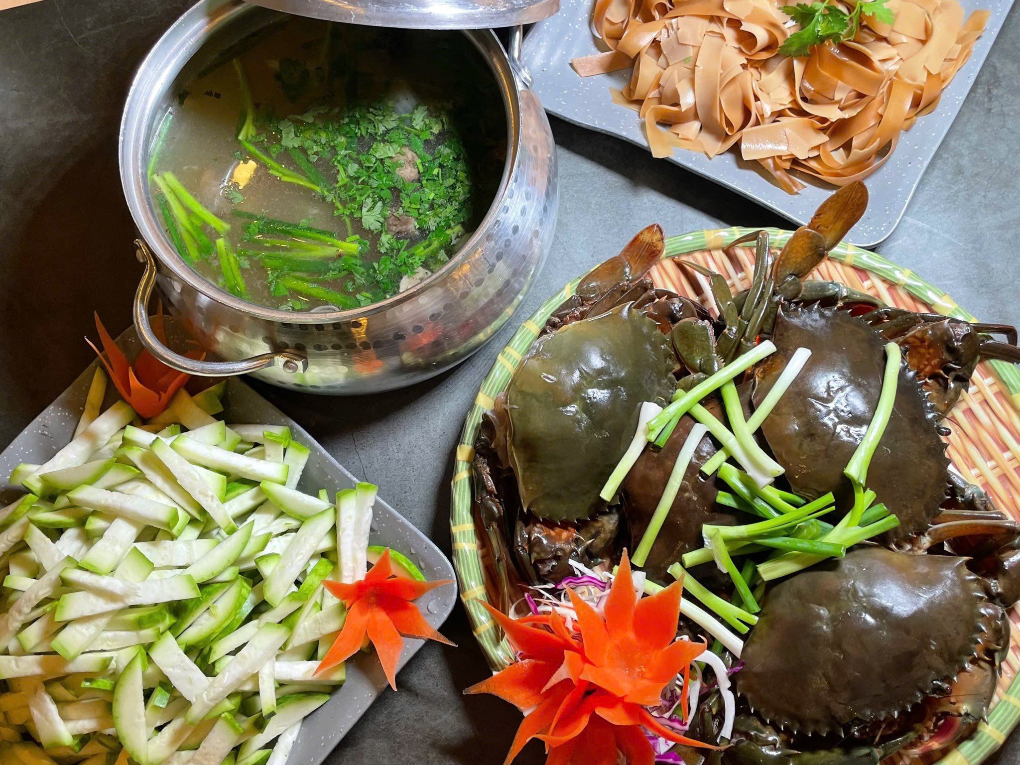 Tại Ẩm Thực Thong Dong bạn sẽ được thưởng thức nhiều món ngon hấp dẫn như: nem cua bể, chả đùm trứng muối, cơm sò điệp xo, bò fuji nướng đá,...